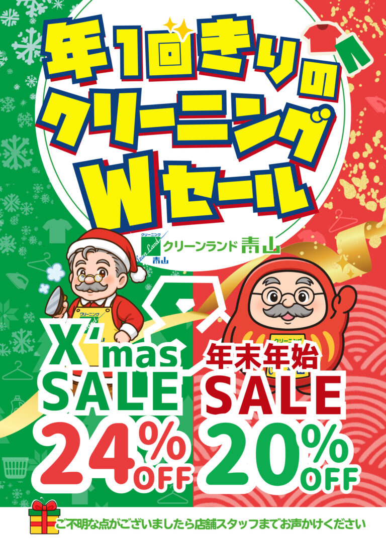 ただいまクリーンランド青山では、クリスマス&年末年始のWセールを実施しています。